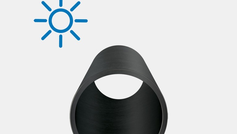 UV-устойчивост Полиетилена използван от Geberit съдържа специални добавки, които ефективно предпазват от UV лъчи. Следователно устойчивите на всякакво време тръби Geberit Silent-db20 могат да бъдат складирани на открито в продължение на месеци. |